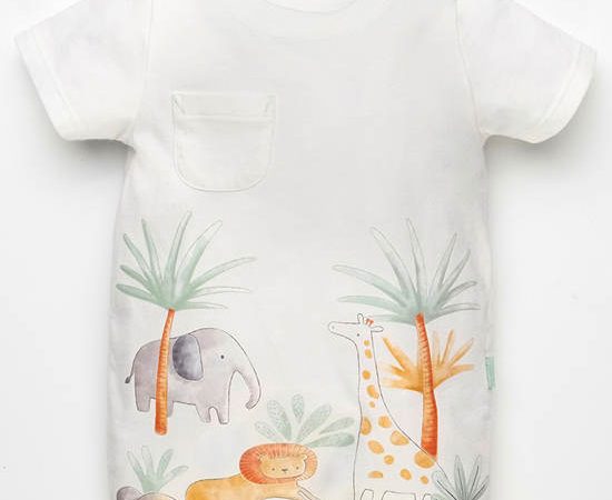 ABSORBA Children’s Organic cotton short-sleeved jumpsuit, Safari collection