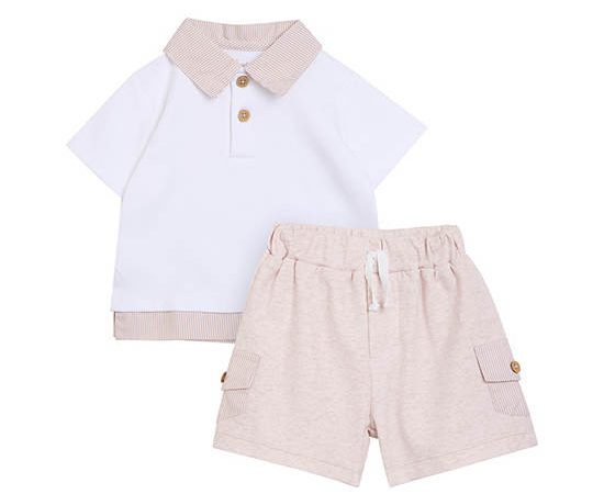 Angel Baby Boy Toddler Polo Shirt Short Sleeves + Shorts White