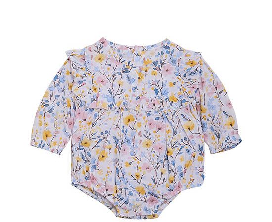 Angel Baby Girl Toddler Romper Long Sleeves Floral Print Multi-Color