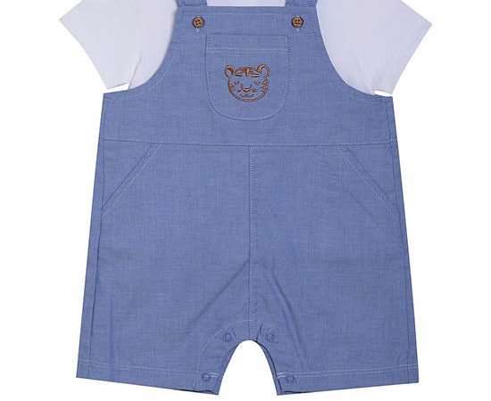 Angel Baby Boy Toddler Set Shirt Short Sleeves + Overalls Dungaree Brown