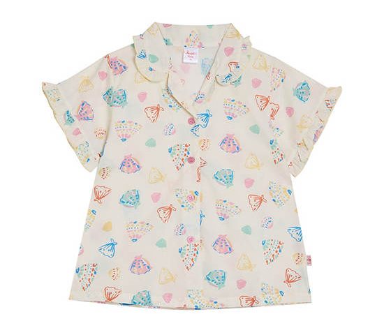 Angel Baby Girl Toddler Pyjamas Shirt Short Sleeves Summer Shell Print Cream