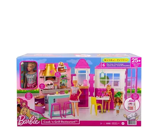 BARBIE Barbie Cook ‘n Grill Restaurant Doll and Playset HBB91 Pink