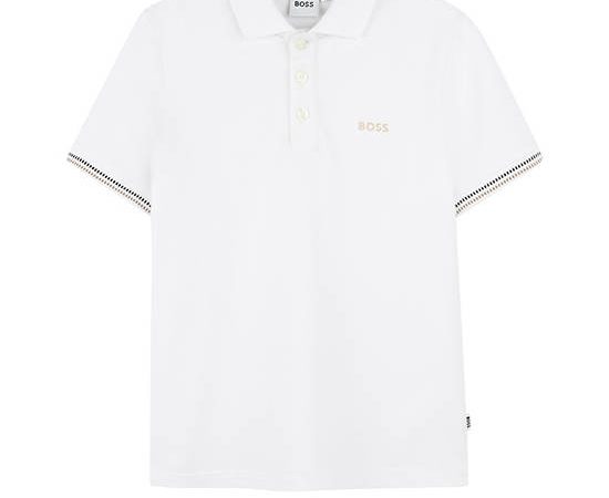 BOSS KIDS Boy Polo Shirt Short Sleeves Ribbed Cuffs Button Placket White