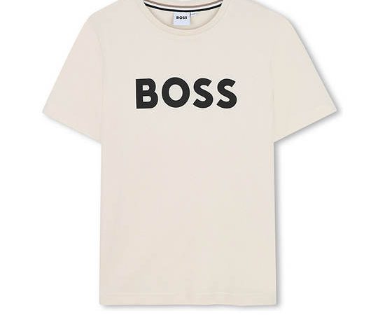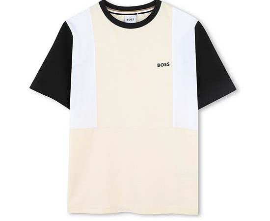 BOSS KIDS Boy T-Shirt Short Sleeves Colour Blocking Beige