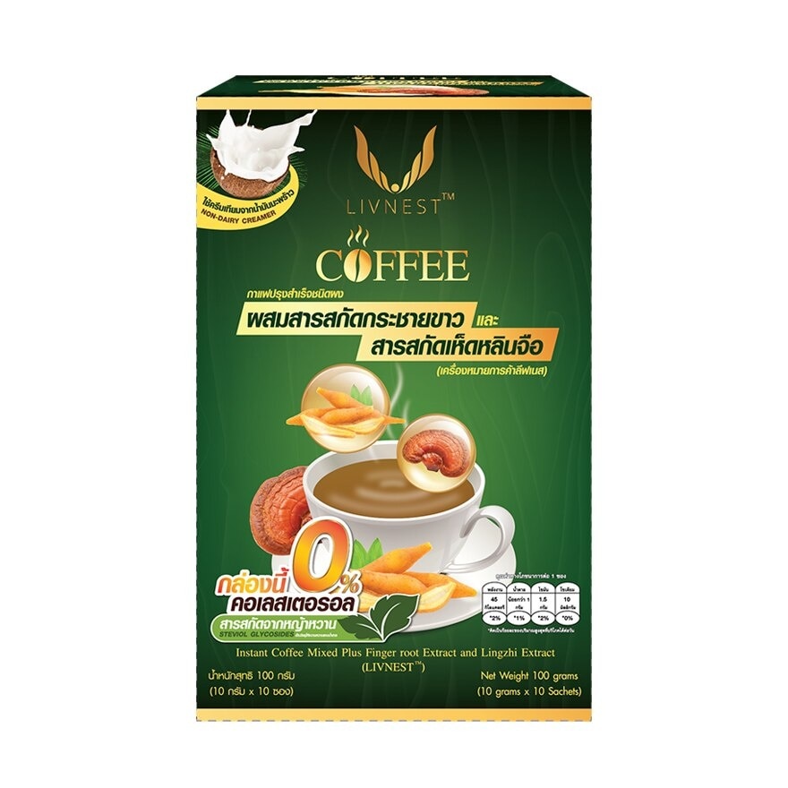 Livnest Instant Coffee Mixed Plus Finger Root Lingzhi Extract 10 Sachets