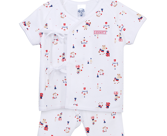 ENFANT Kids Short-sleeved tie-up shirt and 3/4 pants set little deer pattern — White (for children aged 0-6 months)