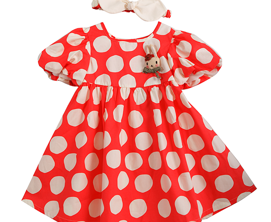 ENFANT Girl’s Skirt set puffed sleeves circle pattern with hair band EE7T81 — Orange/cream (for children aged 6 months — 6 years)