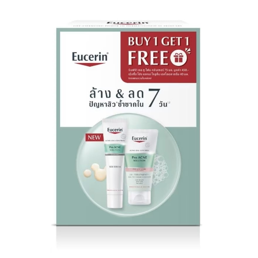 Eucerin Pro Acne Solution SOS Serum 40 ml. 3X Treatment Gel to Foam Cleanser 75 ML