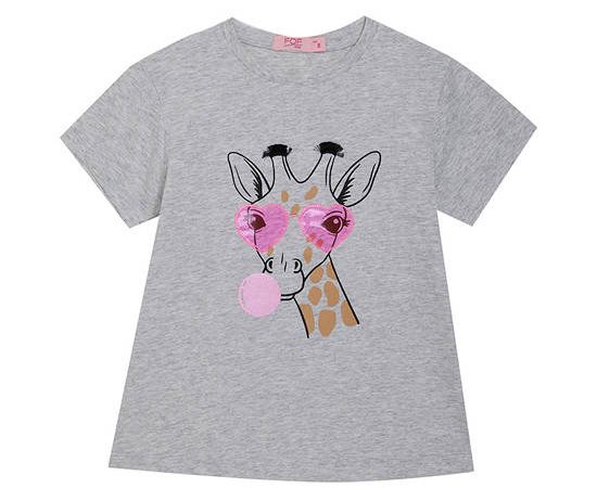 FOF KIDS Girl T-Shirt Short Sleeves Giraffe Printed Grey