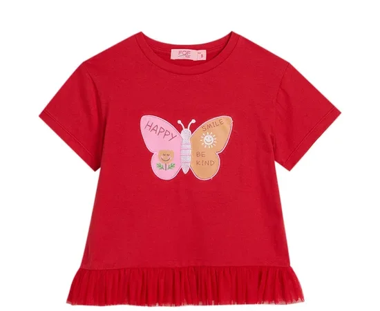 FOF KIDS Girl T-Shirt Flutter Sleeves Buttlefly Print Red