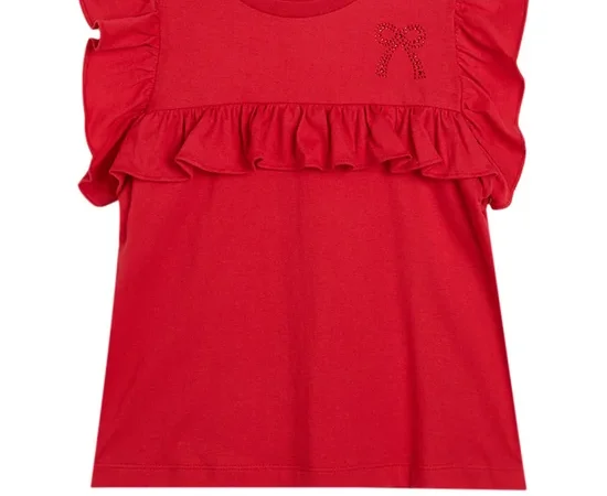 FOF KIDS Girl T-Shirt Flutter Sleeves Diamond Print Red