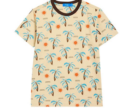 FOF KIDS Boy T-Shirt Short Sleeves Crew Neck Coconut Tree Print Cream