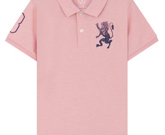 GIORDANO Boy’s Slim Pique Embroidery Bold Polo (3D Lion) Melange rose tan