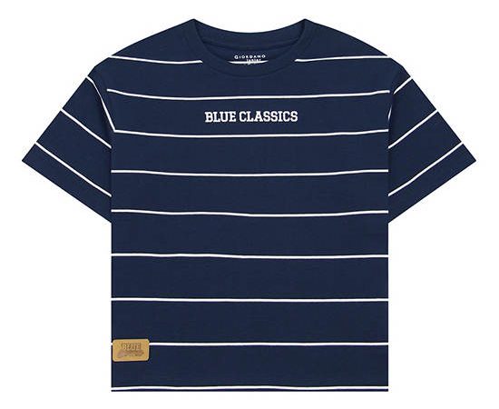 GIORDANO Boy’s Relaxed Jersey Printed Tee (Blue Classics) Navy x White
