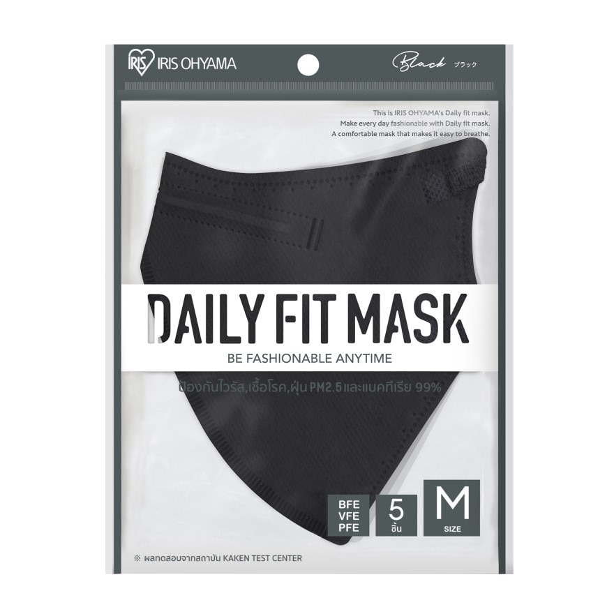 IRIS OHYAMA Face Mask Dairy Fit Black (Size M) 5 Pcs/Pack