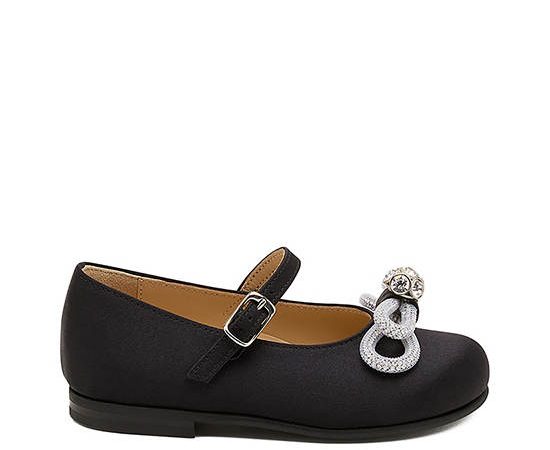 MACH & MACH Girl Toddler Ballerina Shoes Double Bow Mini Black Satin