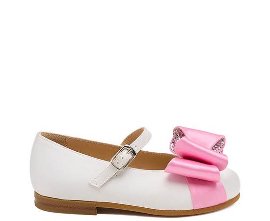 MACH & MACH Girl Toddler Ballerina Shoes Double Bow Mini White Satin