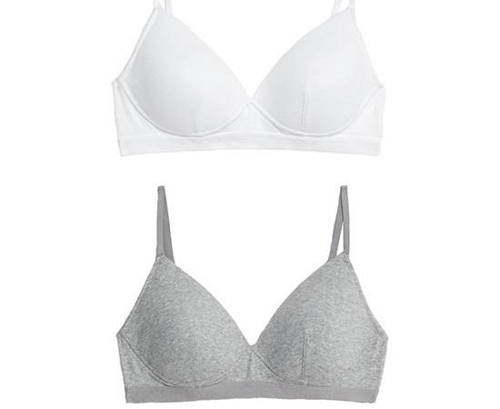 Marks & Spencer Girl First Bras 2pk Non Wired Cotton Rich Ribbed White Mix