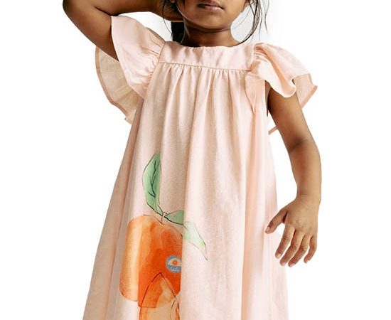MARKS & SPENCER KIDS Girl Toddler Midi Dress Linen Rich Peach Pink