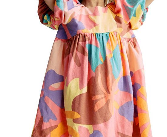 MARKS & SPENCER KIDS Girl Toddler Midi Dress Linen Rich Printed Puff Sleeve Woven Multi-Color
