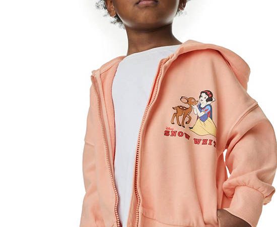MARKS & SPENCER KIDS Girl Toddler Hoodie Cotton Rich Disney Snow White Zip Peach