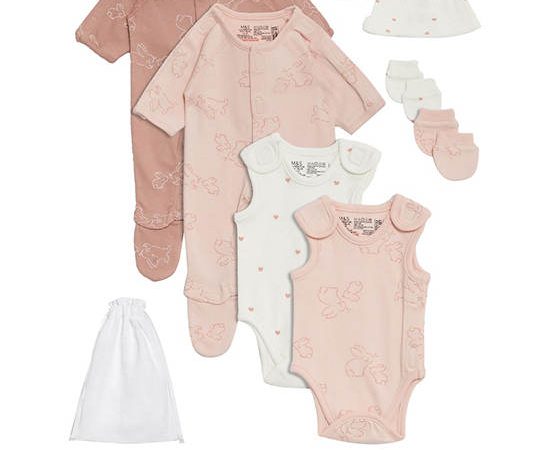 MARKS & SPENCER KIDS Girl Toddler Starter Set Cotton Rich Premature Hospital 8 pcs Pink Mix