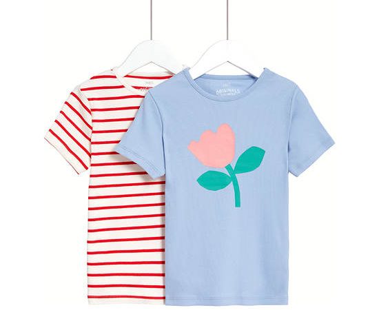 MARKS & SPENCER KIDS Girl Toddler T-Shirt Set Short Sleeves Cotton Rich Printed 2 pcs Multi-Color