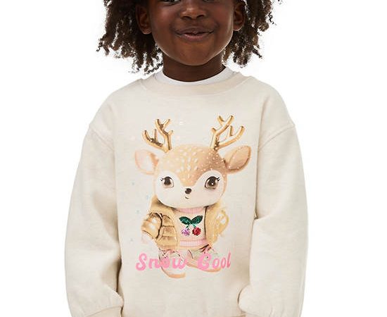 MARKS & SPENCER KIDS Girl Toddler Sweatshirt Cotton Rich Christmas Reindeer Grey Marl