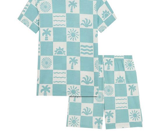 MARKS & SPENCER KIDS Boy Toddler Short Pyjamas Pure Cotton Printed Blue Mix