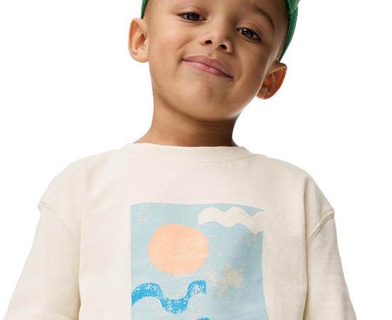 MARKS & SPENCER KIDS Boy Toddler T-Shirt Pure Cotton Wave Graphic Neutral