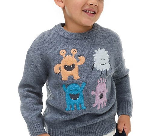 MARKS & SPENCER KIDS Boy Toddler Jumper Monster Knitted Air Force
