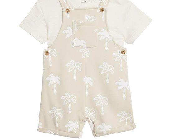 MARKS & SPENCER KIDS Boy Toddler Bibshort Cotton Rich Palm Print 2 pcs Ecru