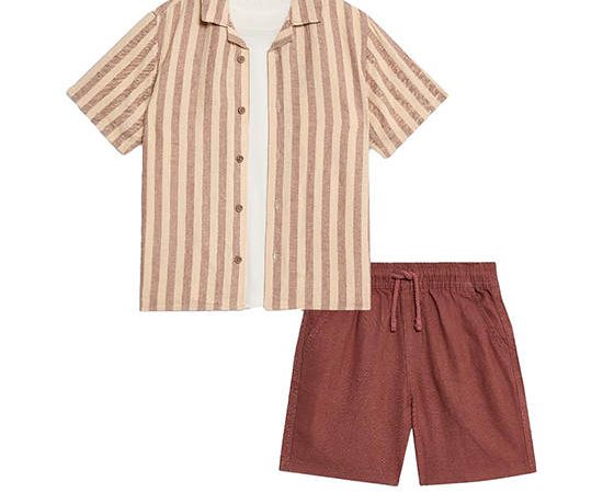 MARKS & SPENCER KIDS Boy Toddler Top & Bottom Outfit Linen 3 pcs Brown Mix