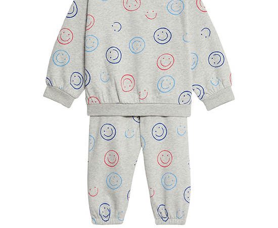 MARKS & SPENCER KIDS Boy Toddler Outfit Cotton Rich Smiley Top & Bottom Grey Marl