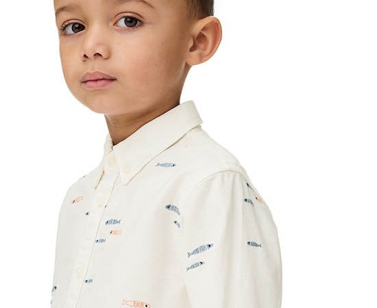 MARKS & SPENCER KIDS Boy Toddler Shirt Pure Cotton Fish Embroidered Oxford Ecru