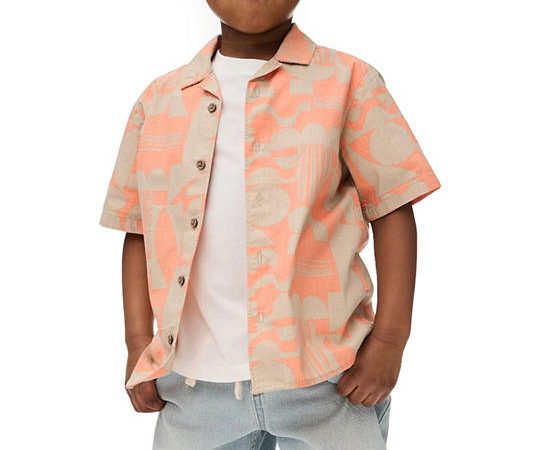 MARKS & SPENCER KIDS Boy Toddler Shirt & T-Shirt Set Pure Cotton Printed Orange Mix