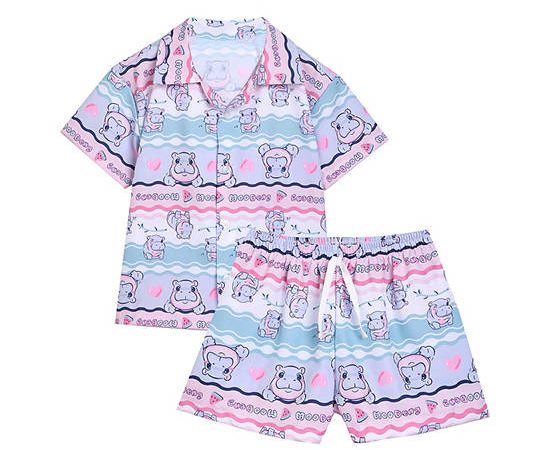MINI MONO Unisex Kids Set Hawaii Shirt + Shorts Moodeng Print Pink