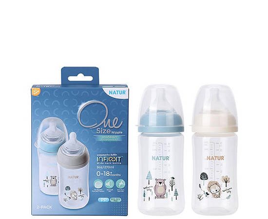 NATUR Feeding Bottle Infinit PP 9 oz Pack 2 Multi-Color