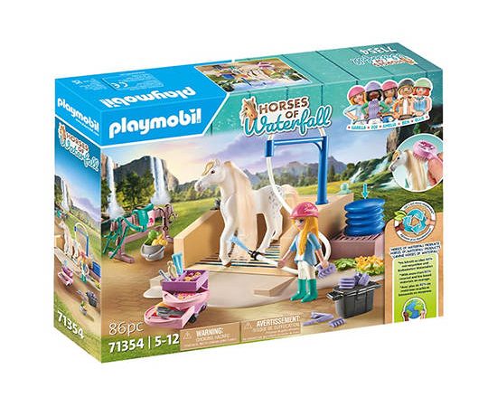 PLAYMOBIL HORSES OF WATERFALL WASHING STATION WITH ISABELLA AND LIONES