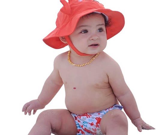 Zoocchini RED UPF50+ Baby Swim Diaper & Sun Hat Set -Charlie the Crab for 3-6 months