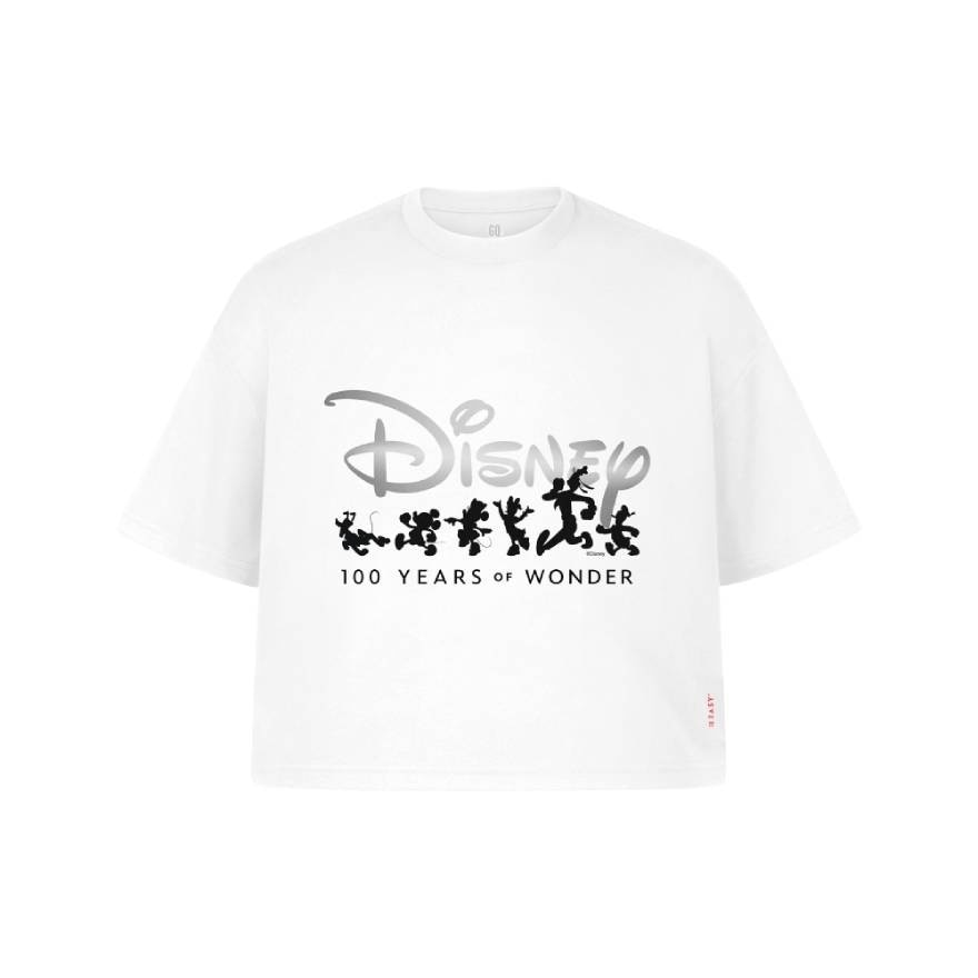 GQ Disney Crop T-Shirt Metallic White Size XL