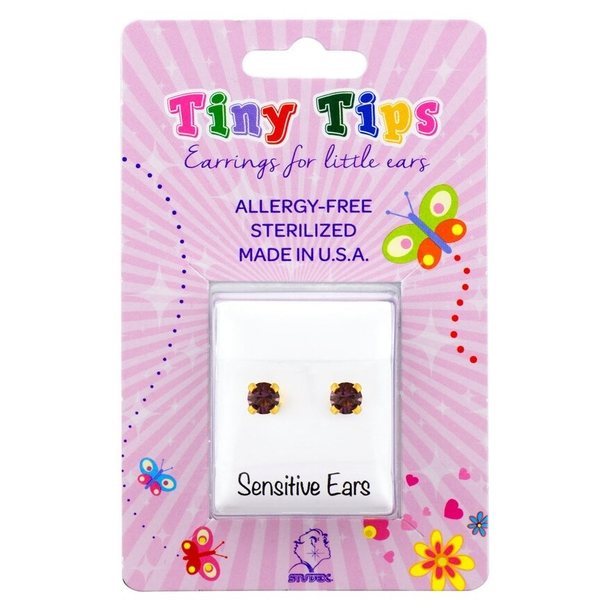 Studex Tiny Tips Earrings For Sensitive Ear Gold Plated 3mm Feb Amethyst