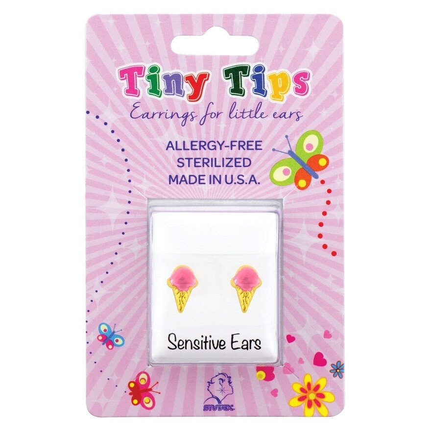 Studex Tiny Tips Earrings For Sensitive Ear Gold Plated Pink Ice Cream