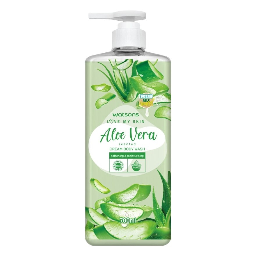 Watsons Love My Skin Aloe Vera Scented Cream Body Wash 700ml.
