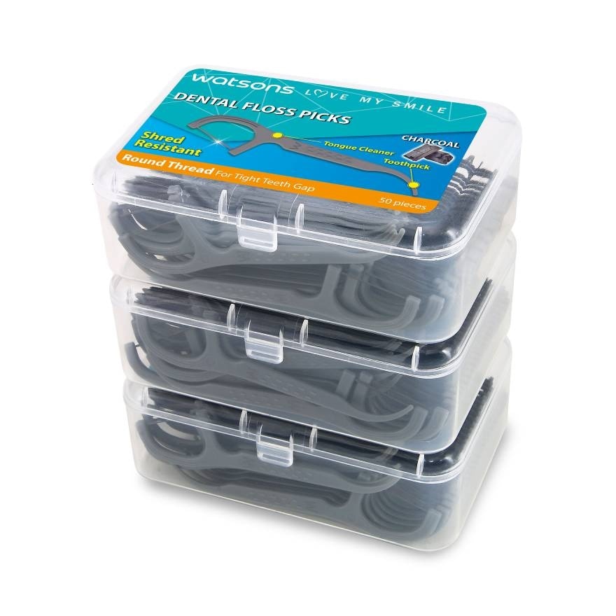 Watsons Charcoal Round Thread Dental Floss Picks 50s x 3 Boxes.