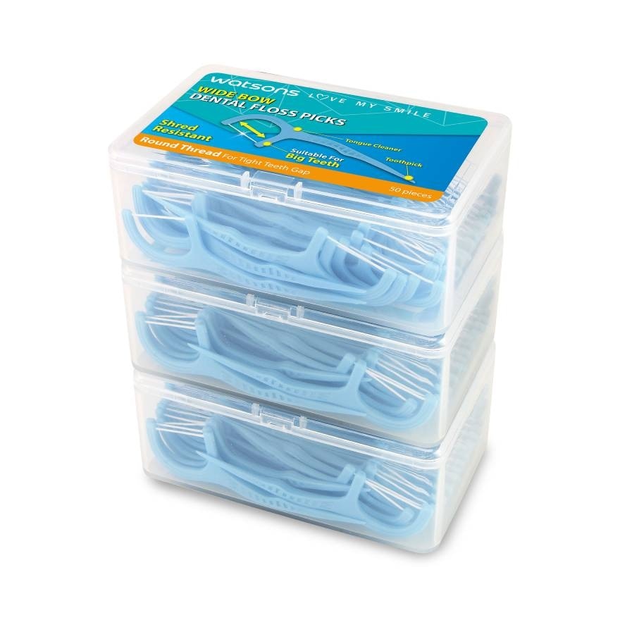 Watsons Round Thread Wide Bow Dental Floss Picks 50s x 3 Boxes.