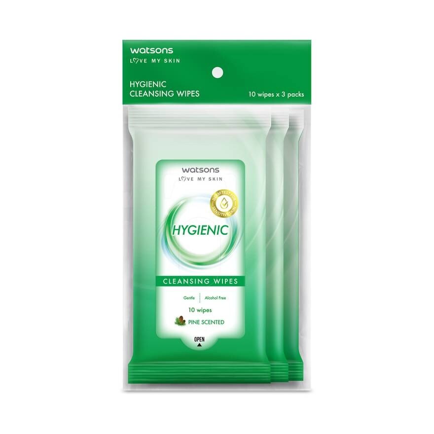 Watsons Hygienic Cleansing Wipes 10 sheets x 3 Packs.