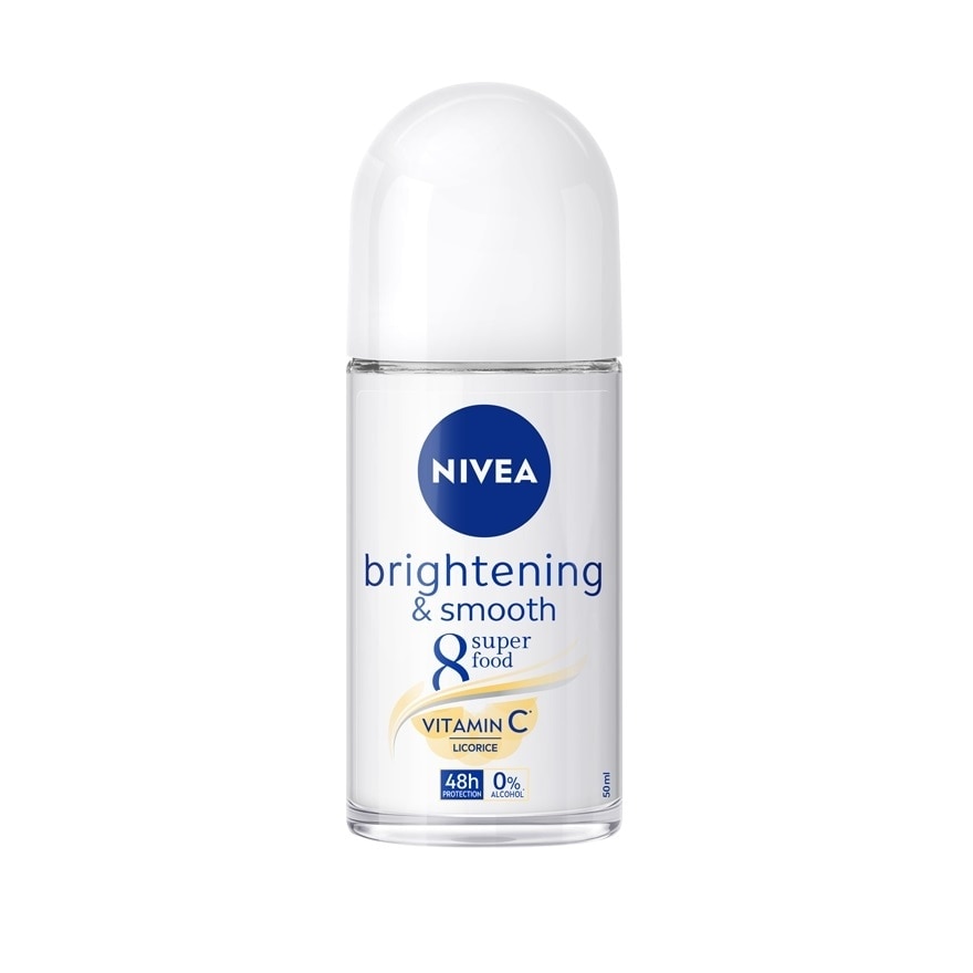 Nivea Roll On Brightening Smooth 8 Super Food 50 Ml. โรลออน ระงับกลิ่นกาย