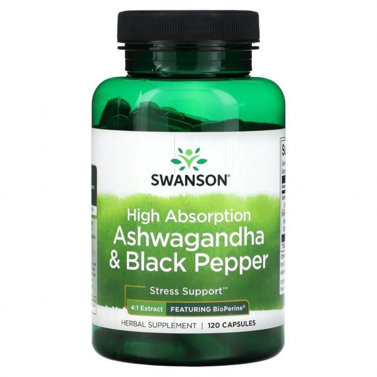 Swanson, Ашваганда и черный перец с высокой усвояемостью, 120 капсул