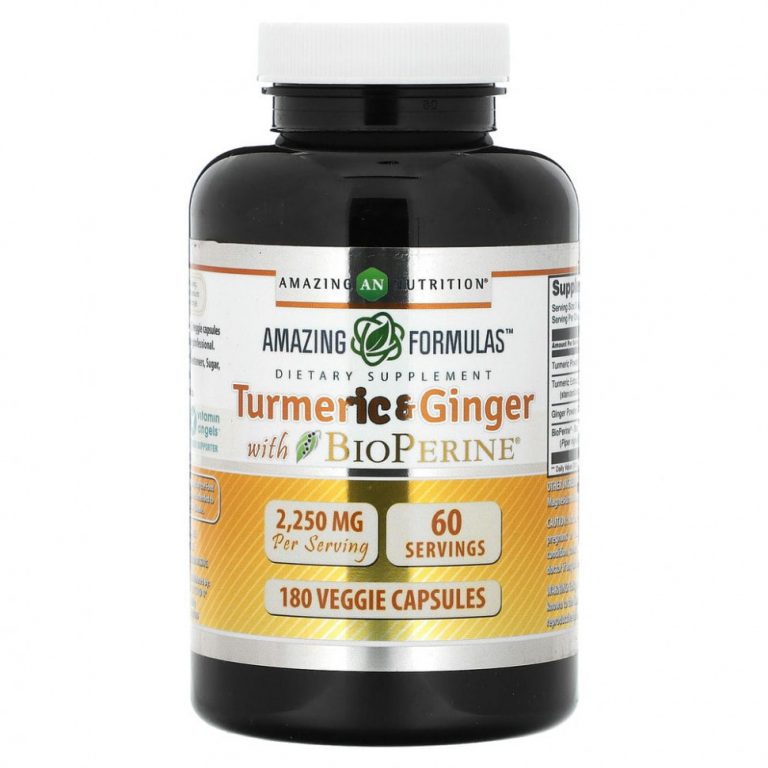 Amazing Nutrition, Куркума и имбирь с биоперином, 750 мг, 180 растительных капсул
